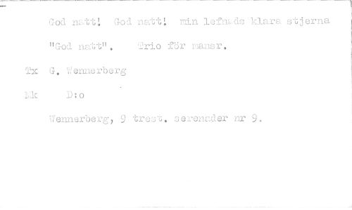 //// God natt God n at t ; min 1 e flu, ds klara "God natt" Trio för mans r - erna //// Tx G. Uenne rb e rg //// 12x D; o //// Wennerberg, 9 tres . s e renad er nr 9. ////