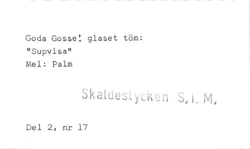 //// Goda Gosse: glaset töm: "Supvisa" //// Mel: Palm //// Ska',ö yeken S. L NI, //// Del 2, nr 17 ////