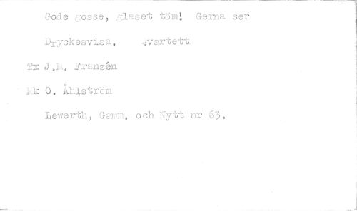 //// Gode gosse, glaset töm! Gerna ser DrYckeevica. ••;v2x-tsett. //// Tx J.L. Franzbn //// Idlk 0. Åhlström //// Lewerth, Gelmi. och Nytt nr 63. ////