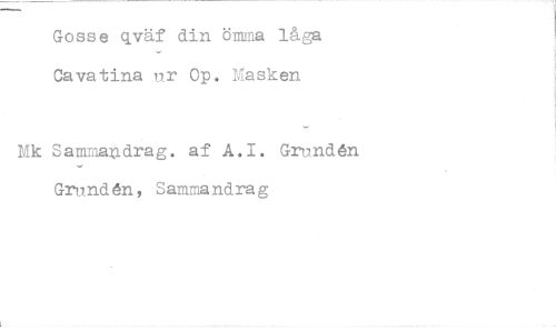//// Gosse qväf din ömma låga Cavatina ur Op. Masken //// Mk Sammandrag. af A.I. Grundkl Grund6n, Sammandrag ////