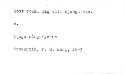 //// Godt folk. jag vill sjunga etc. s. - //// Tjugu sångstycken //// Stockholm, P. G. Berg, 1853 ////