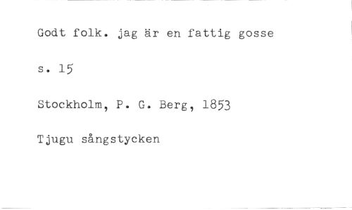 //// Godt folk. jag är en fattig gosse s. 15 //// Stockholm, P. G. Berg, 1853 //// Tjugu sångstycken ////
