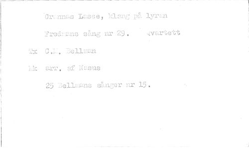 //// Gr:nns WsGe, klang på lyrLm 2re1lns sång nr 29. ..oivartett //// x C.L. Bellman //// hk arr. af :gasas //// 25 :73e1lns snar nr 15. ////