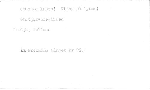 //// Grann as ]lasse7. Klang på lyran. Gäs gi fy aregär den //// (.21c 3el1nia1 //// Fredmans s 'ånger nr 29. ////