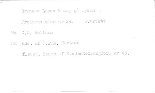 //// Grannas Lasse klang på. lyras - //// Fredmans sång nr 29. -v*Ei.rtett //// Wx C Bellman //// uds . af J.P.E. Hartran //// flerst. Lange af Studentersangfor. nr 43. ////