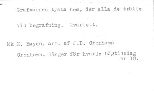 //// Grafvarnes tysta hem, der alla de trötte Vid begrafning. r,vartett. //// Tik Tvi. Haydn, arr. af J.P. Cronhamn //// Cronhamn, Sånger för hvarje högtidsdag //// nr 18. ////
