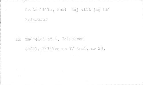 //// Gra lilla, ack'. dej vill ja ha' Friarbref //// kk meddelad -af A. Jonsson Filikromen IVA-27:1. nr 29. ////