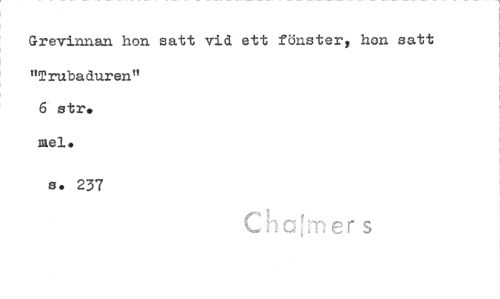 //// Grevinnan hon satt vid ett fönster, hon satt //// "Trubaduren" 6 str. //// mal, //// s. 237 //// (:' er s ////