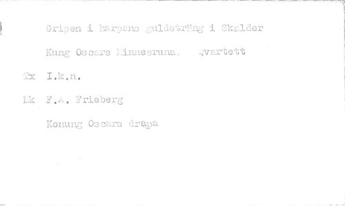 //// Gripen i harpens guldstrv i Skalder Kung Oscars Yinnesruna, :,-vartett //// Tx I.k.n. //// IJ Frieberg //// Konung: Oscars drapa ////