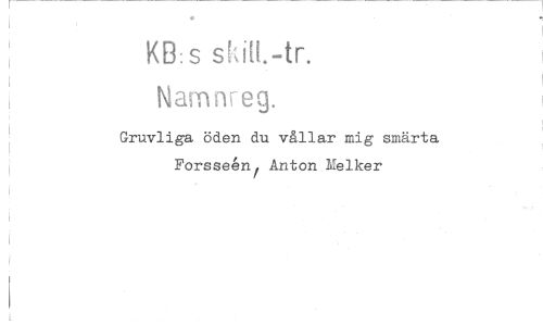 //// KE3: s //// Namnreg. //// Gruvliga öden du vållar mig smärta //// Forsseen/ Anton Melker ////