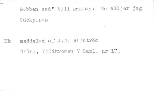 //// Gubben sad' till gumman: Ni säljer jag Säckpipan //// Mk meddelad af J. N. Åhlström //// Ståhl, Pilikromen V Saml. nr 17. ////