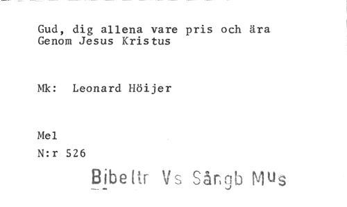 //// Gud, dig allena vare pris och ära Genom Jesus Kristus //// Mk: Leonard Höijer //// Mel //// N:r 526 //// Bibettr Vs Sångb Mus ////
