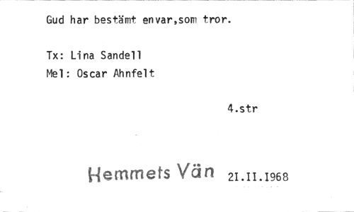 //// Gud har bestämt envar,som tror. //// Tx: Lina Sandell Mel: Oscar Ahnfelt //// 4.str //// Hemmets Vän 21.11.1968 ////