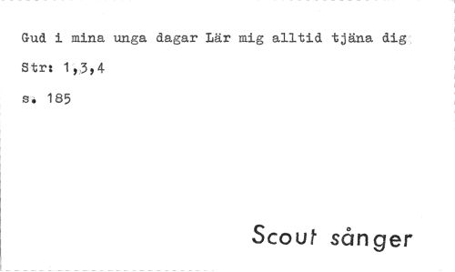 //// Gud i mina unga dagar Lär mig alltid tjäna dig: Strt 13,4 //// s. 185 //// Scout sån ger ////