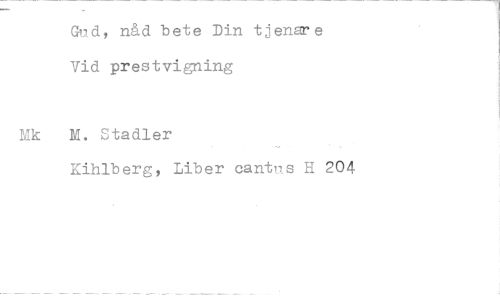 //// Gnd, nåd bete Din tjenare Vid prestvigning //// Mk M. Stadler //// Kihlberg, Liber cantps H 204 ////