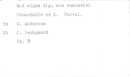 //// Gud signe dig, min venneviv! Sömandsliv nr 1. Farvel. //// Tx C. Andersen //// Mk J. Bechgaard //// Op. 9 ////