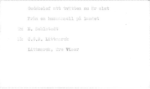 //// Gudskelof att tyKtten nu är slut Från en husisell på landet //// E. Sehlstedt //// iJ C.G.R. Litt=ek //// Littmarck, 2re Visor ////