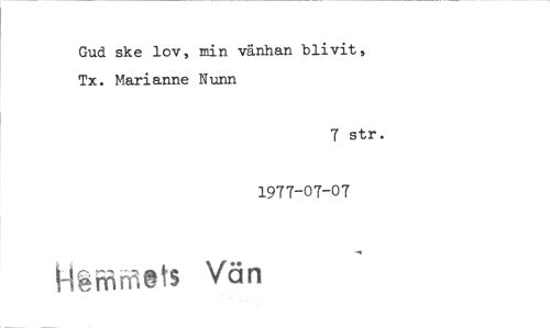 //// Gud ske lov, min vänhan blivit, Tx. Marianne Nunn //// 7 str. 1977-07-07 //// ilhffifflets Vän ////