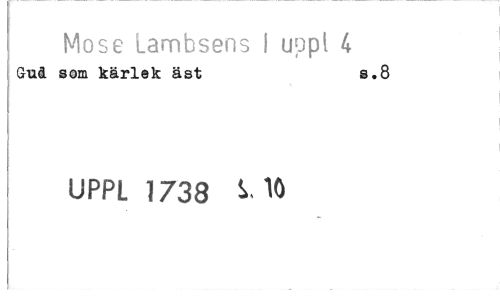 //// Mose Lambsens 1 uppt 4 //// Gud som kärlek äst i.8 //// UPPL 1738 5,16 ////