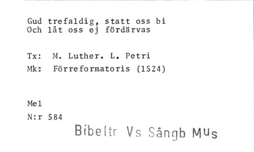 //// Gud trefaldig, statt oss bi Och låt oss ej fördärvas //// Tx: M. Luther. L. Petri Mk: Förreformatoris (1524) //// Mel //// N:r 584 //// Bibeltr Vs Sångb Mus ////
