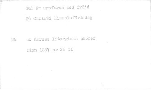 //// Gud är uppfaren med fröjd Pä nxisti hinlaelsfärdsdag //// Ek ur Karows liturgiska dhörer //// non, 1367 nr 26 II ////