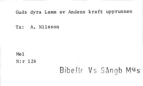 //// Guds dyra Lamm av Andens kraft upprunnen Tx: A. Nilsson //// Mel //// N:r 126 //// Bibeftr Vs Sångb M&4s ////