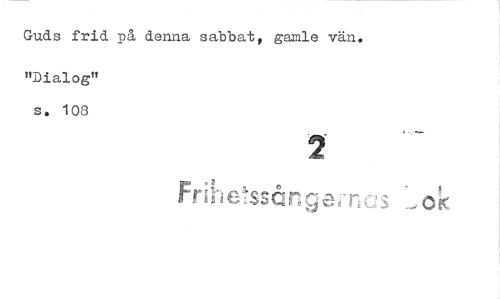 //// Guds frid på, denna sabbat, gamle vän. //// "Dialog" //// s. 108 //// 2 //// "s ange:" ////