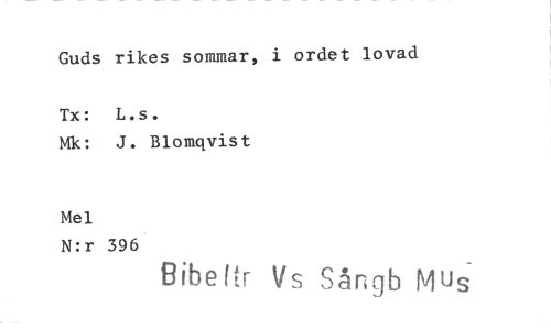 //// Guds rikes sommar, i ordet lovad //// Tx: L.s. //// Mk: J. Blomqvist //// Mel //// N:r 396 //// Bibeltr Vs Sårigt) Mus ////