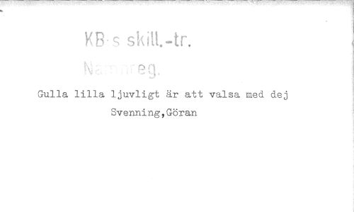 //// YB, //// Gulla lilla ljuvligt är att valsa med dej Svenning, Göran ////