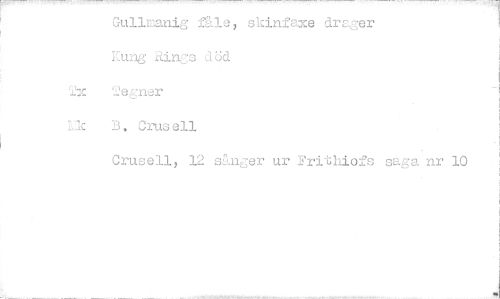 //// Gullranig fäle, skinfaxe drager //// Kung Rings död //// 2x Tegner //// 12k D, Crusell //// Crusell, 12 &Iner ur Frithiofs saga nr 10 //// ana ////
