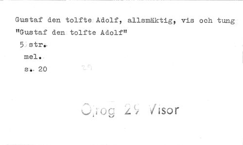//// Gustaf den tolfte Adolf, allsmäktig, vis och tung "Gustaf den tolfte Adolf" //// 5str. //// mel. //// si. 20 //// r. 0 /isor ////