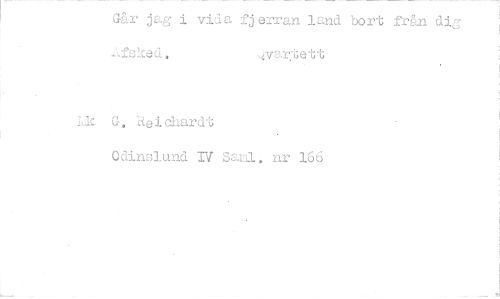 //// Går jag. i vida fje uan land bort från dig //// varett //// LdC G. Reichardt //// Odinslund IV Sai1. nr 166 ////