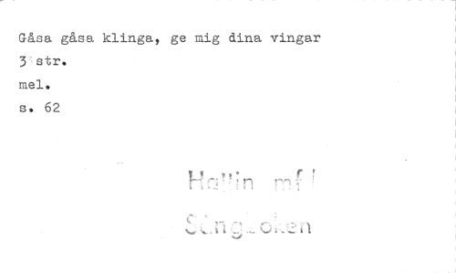 //// Gåsa gåsa klinga, ge mig dina vingar Ystr. //// nie 1. //// s. 62 ////
