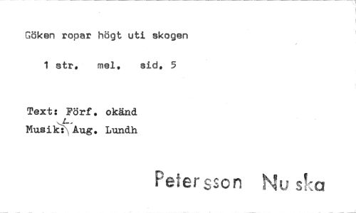 //// Göken ropar högt uti skogen 1 str. mel. sid. 5 //// Text: Förf. okänd ,4 //// Musik::Aug. Lundh //// Petersson N ////