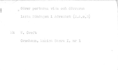 //// Görer porterne,. vida och dörr .rna //// 1: sta Undagen i Adventet (S.A,o,-13) //// ik W. Croft //// Cronhann, kuCieL Sucra 1, nr 1 ////