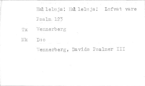 //// Halleluja; Hal leluja: Ilofvat vare Psalm 123 //// Tx Wennerberg //// lik D:o //// ennerberg, Davids Psalmer III ////