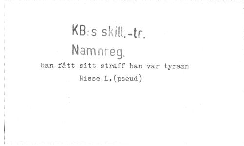 //// KB:s //// Namnreg. //// Han fått sitt straff han var tyrann Nisse L.(pseud) ////
