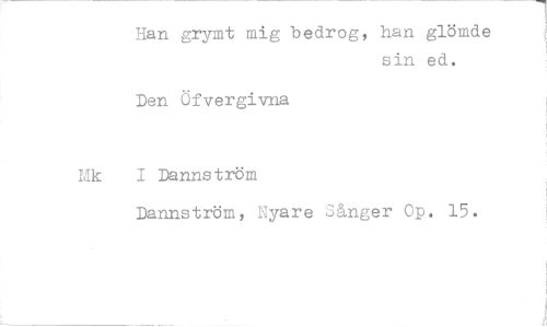 //// Han grymt mig bedrog, han glömde //// sin ed. //// Den Öfvergivna //// Hk I Dannström //// Dannström, Nyare Sånger Cp. 15. ////