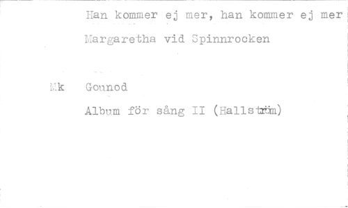 //// Han kommer ej mer, han kommer ej mer, LTargaretha vid Spinnrocken //// k Gounod //// Album för sång II (Hallström} ////