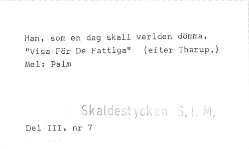 //// Han, som en dag skall verlden döma, "Visa För De Fattiga" (efter Tharup.) Mel: Palm //// Skaiciest' //// Del III, nr 7 ////