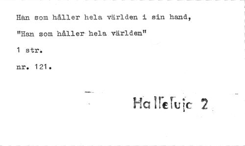 //// Han som håller hela världen i sin hand, "Han som håller hela världen" //// 1 str. //// nr. 121. //// ?da Verv it 2 ////