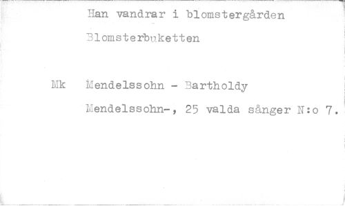 //// Hän vandrar i blomstergården Blomsterbuketten //// Mk Mendelssohn Bartholdy Mendelssohn-, 25 valda sånger N:o 7. ////