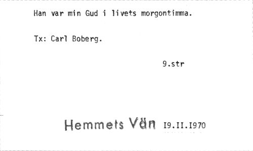 //// Han var min Gud i livets morgontimma. Tx: Carl Boberg. //// 9.str //// Hemmets Vän 19.11.1970 ////