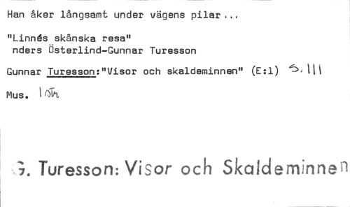 //// Han åker långsamt under vägens pilar... //// "Linnös skånska resa" //// nders Österlind-Gunnar Turesson //// Gunnar Turesson:"Visor och skaldeminnen" (E:1) 5111 Mus. kk //// ;. Turesson: Visor och Skaldeminnen ////