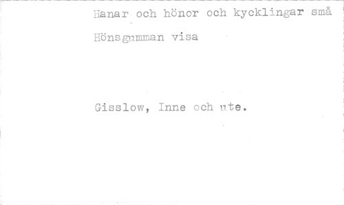 //// Hanar och hönor och kycklingar små Hönsgumman visa //// Gisslow, Inne och Ilte. ////