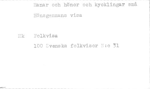 //// Hanar och hönor och kycklingar små 1 //// Hönsgummans visa //// rk Folkvisa //// 100 svenska folkvisor 7:o 31 ////