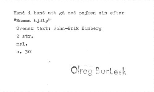 //// Hand i hand att gå med pojken sin efter "Mamma hjälp"- //// Svensk text: John-Erik Elmberg, //// 2 str. //// mel. //// s. 30 //// r re (.7 7 urlesk ////