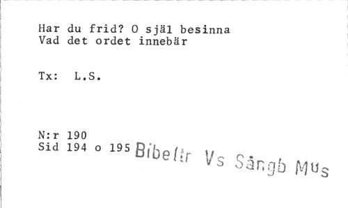 //// Har du frid? 0 själ besinna Vad det ordet innebär //// Tx: L.S. ,..ngb mus //// N:r 190 //// Sid 194 0 19513'k //// We/g kils ////