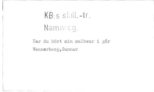 //// KB:s //// Namw-cg. //// Har du hört min malheur i går Wennerberg,Gunnar ////