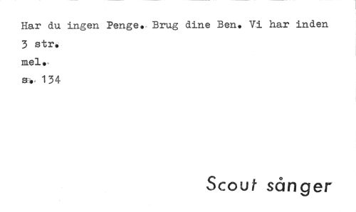 //// Har du ingen Penge. Brug dine Ben. Vi har inden 3 str. //// mel. //// 54 134 //// Scout sånger ////